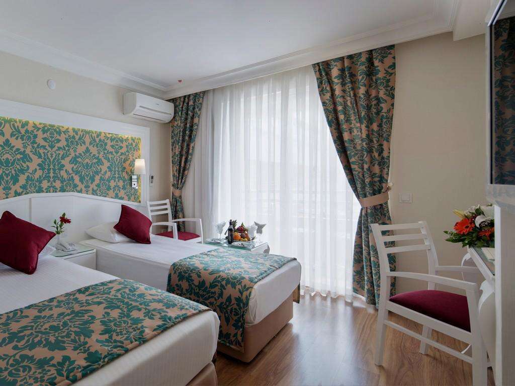 ELHELYEZKEDÉS: Alanya központjától kb. 4 km-re • Antalya repülőtér kb. 120 km • a szálloda területe kb. 1.700 m² • mozgáskorlátozottak számára kialakított szoba
