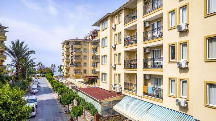 Szállás leírás: A 4*-os, 5 emeletes épületből álló, összesen 233 szobával rendelkező szálloda kb. 1 km-re Alanya városközpontjától, kb. 50 m-re a homokos tengerparttól helyezkedik el.