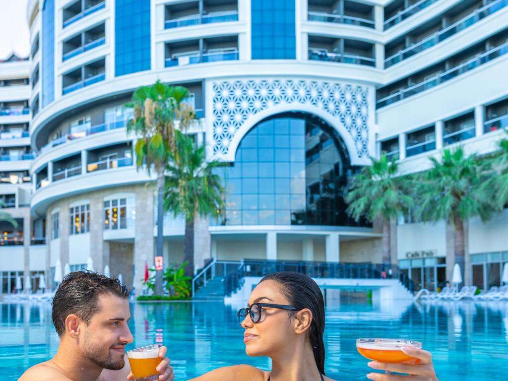 SZOLGÁLTATÁSOK: medencék napernyőkkel és napozóágyakkal • beltéri medence • aquapark • főétterem • bárok (lobby, pool, beach...) • nappali és esti animációs programok • esti show • élő zene • amfiteátrum • fitnesz • vízi torna • boccia • darts • asztalitenisz • strandröplabda • kosárlabda • vízilabda • mini futball • jóga • pilates • aerobik • step aerobik • zumba • török fürdő • szauna • wifi • felár ellenében: SPA központ • törökfürdő-kezelések • masszázs • kozmetikai kezelések • fodrászat • orvosi szolgáltatás • mosoda • autókölcsönzés • vízi sportok a tengerparton • konferenciaterem