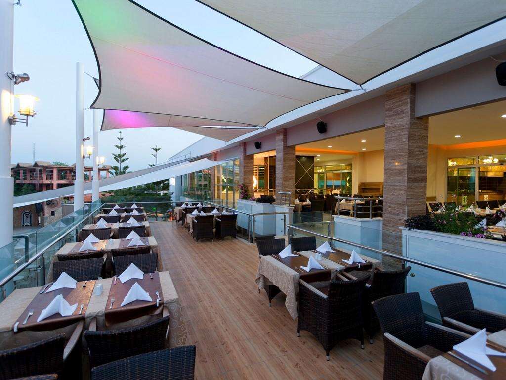 SZOLGÁLTATÁSOK: medencék napernyőkkel és napágyakkal • beltéri medence • csúszdák • fő étterem • bárok (lobby, pool, beach...) • soft animációs programok • asztalitenisz • darts • vízi torna • szauna • törökfürdő • wifi a lobbyban • térítés ellenében: SPA központ • törökfürdő kezelések • gőzfürdő • masszázs • peeling • fodrászat • üzletek • mosoda • orvosi szolgáltatás • biliárd • autó- és kerékpárkölcsönzés • vízi sportok a strandon • konferenciaterem
