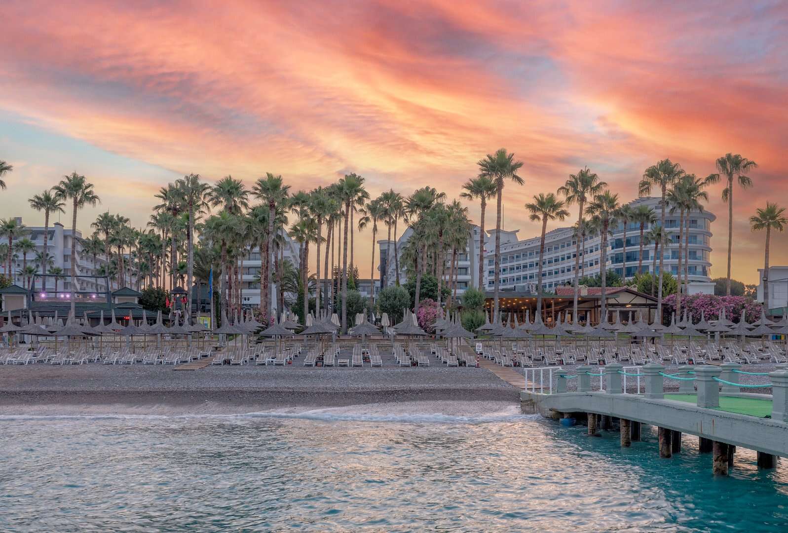 A szálloda mellett homokos és aprókavicsos strand található, a tengerbe a mólóról is be lehet jutni. A strandon a napágyak és napernyők ingyenesen használhatók. A hotel érkezéskor ingyenesen biztosít strandtörölközőt, a törölközők cseréje esetén viszont kisebb összegű díjat számítanak fel.