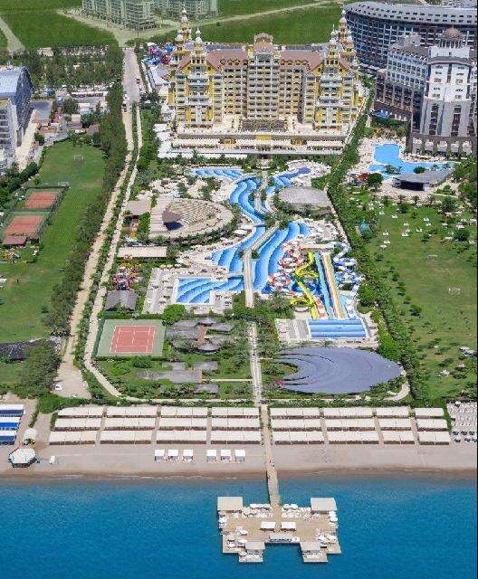 A 2011 áprilisában megnyílt, egyedi építészeti stílusú, 53.000 nm-en elterülő, elegáns, közkedvelt luxusszálloda a repülőtértől 15 km-re, Antalya központjától 17 km-re, a híres Lara Beachen fekszik, közvetlenül a homokos-aprókavicsos tengerparton. A városba taxival vagy dolmussal könnyedén bejuthatunk.