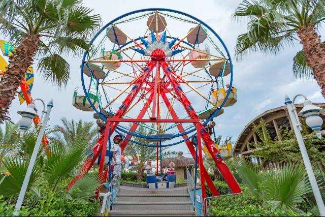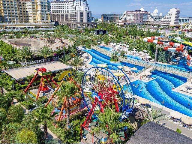 3.700 nm-es medence napernyőkkel és napozóágyakkal, 2 gyermekmedence, aquapark 5 felnőtt és 3 gyermekcsúszdával, 7 étterem, 9 bár, nappali és esti animációs programok, show-műsorok, musical- és professzionális táncelőadások, élő zene bizonyos napokon, diszkó tematikus partikkal, vidámpark, miniklub (4-12 éves korig), játszótér, mini kosárlabda, minibowling, minidiszkó, törökfürdő, szauna, gőzfürdő, fitneszterem, reggeli torna, aerobik, táncórák, vízi torna, teniszpálya felszereléssel (napközben, előzetes foglalással), strandröplabda, vízilabda, boccia, darts, asztalitenisz, WIFI a szobákban és a lobbyban.