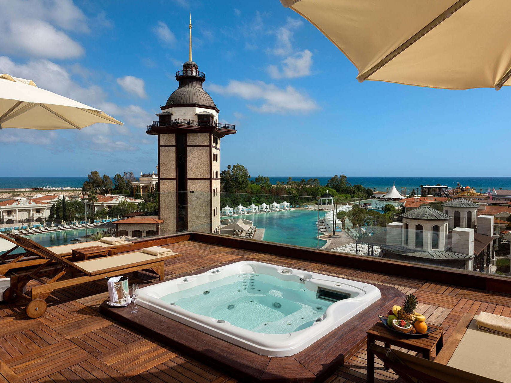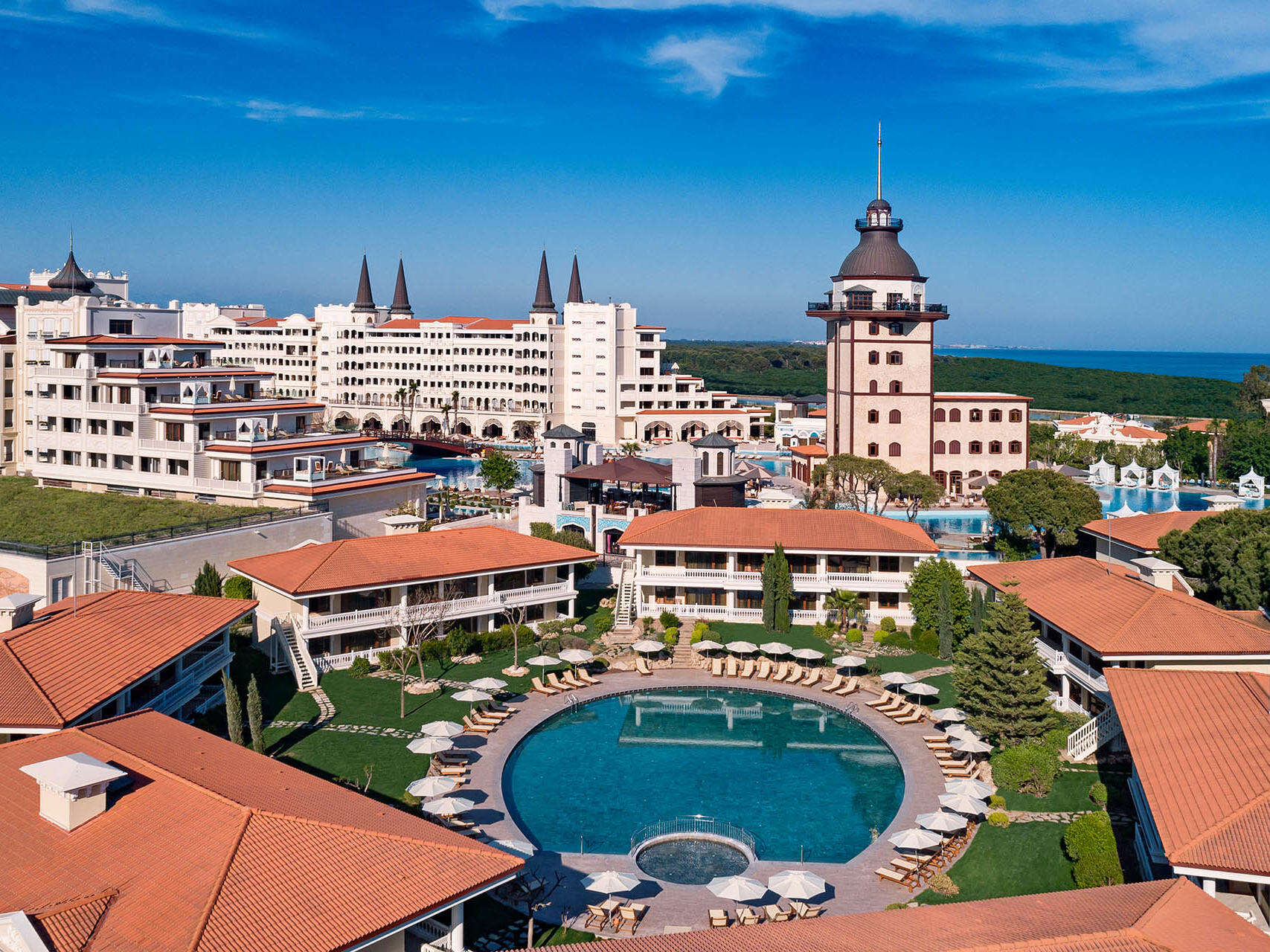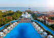 Szeretné élvezni a Dolmabahce Palota pompáját és szultánoknak kijáró kényeztetésben eltölteni törökországi luxusnyaralását? Akkor megtalálta a megfelelő szállodát! A Titanic Mardan Palace Hotelt méltán emlegetik a Török Riviéra legfényűzőbb szállodájának; a belső terek márványburkolata, a szobai berendezések finom bársonykárpitja és a rengeteg aranydíszítés csillogása pompás látványt nyújt. Autentikus, kifinomult stílusa, egyedi építészeti megoldásai és mesebeli világa - melyek a múlt előtt hódolva ötvözik a királyi pompát és a modern világ luxusigényeit - egészen biztosan Önt is lenyűgözik majd. Igazán élménydús fürdőzésben lehet része a világ egyik legnagyobb, csaknem 10.000 nm-es szállodai medencéjében, vagy kellemes és frissítő órákat tölthet a 7.500 nm-es Spa központban, melynek elismeréséül egykor az Európa legjobb Spa szállodája címet is megkapta. A 2009-ben megnyílt és 2019-ben felújított hotel Antalya központjától 15 km-re, a repülőtértől 10 km-re, mintegy 180.000 nm területen terül el közvetlenül homokos strandján. Saját partszakasza fehérhomokkal lett feltöltve, melyhez 9.000 tonna egyiptomi fehérhomokot importáltak.