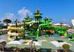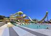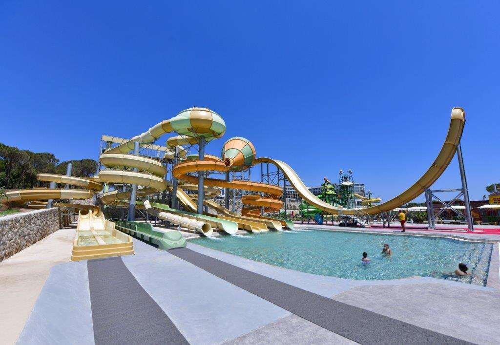 Főmedence lassan mélyülő résszel, napernyőkkel és napozóágyakkal 2.900 nm-en, fűthető gyermekmedence 100 nm-en, tengerre néző, fűthető San Torini medence (16 év felett, 07:00-20:00 között, díj ellenében), fűthető animációs medence, fűthető Casita, Swim-up és villamedencék az adott szobatípust foglaló vendégek részére, felnőtt aquapark 8 csúszdával, gyermek aquapark 7 csúszdával,