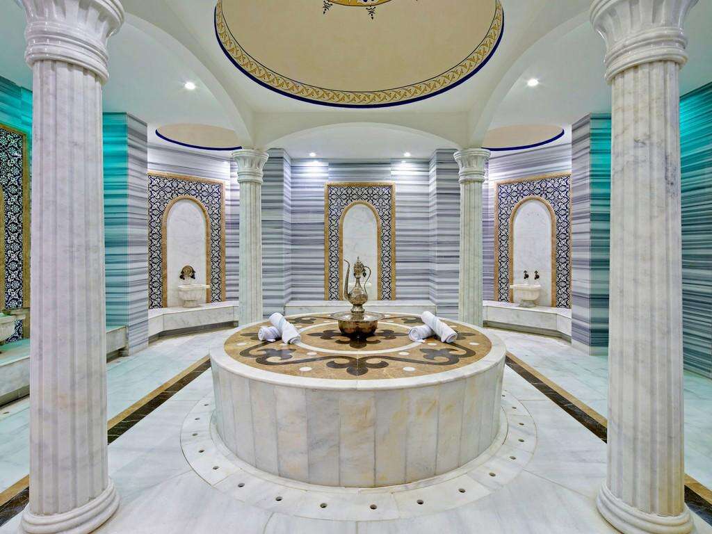 SZOLGÁLTATÁSOK: medencék napernyőkkel és napágyakkal (1 sós vizű) • beltéri medence • aquapark • főétterem • bárok (lobby, medence, tengerpart…) • cukrászda • nappali és esti animációs programok • esti szórakoztató programok • élőzene • diszkó • fitnesz • mozi • darts • asztalitenisz • aerobic • strandröplabda • jóga • vízilabda • íjászat • pilates • teniszpályák – teniszpálya világítás • kosárlabda • bowling • biliárd • szauna • törökfürdő • gőzfürdő • wifi • felár ellenében: SPA központ • törökfürdő kezelések • masszázs • kozmetikai kezelések • szépségszalon • teniszüktetés • profi futballpályák • golfpálya • golfleckék • üzletek • mosoda • orvosi szolgáltatás • vízi sportok a strandon • konferenciatermek