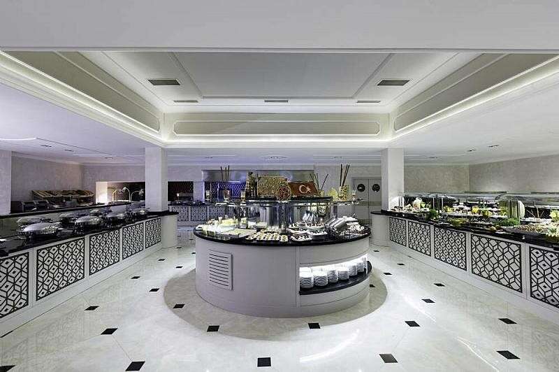 Ultra All Inclusive: minden étkezés büférendszerben, reggeli későn kelőknek 10:00 és 11:00 óra között, éjféli snack-ételek 23:00 és 24:00 óra között, szendvicsek és gofrik 12:30 és 17:00 óra között, fagylalt és sütemények 10:30 és 17:30 óra között, török palacsinta 11:00 és 17:00 óra között, helyi alkoholos és alkoholmentes italok a lobby-bárban egész nap, a további bárokban a nyitvatartás szerint 10:00 és 00:30 óra között, vacsoráznimin. 5 éjszaka foglalása esetén az a'la carte-étteremben (török és fisch & chips) is lehet 19:00 és 21:30 óra között (előzetes foglalás szükséges). Az Ultra All Inclusive szállodák szolgáltatásai bizonyos részletekben szállodánként eltérhetnek.