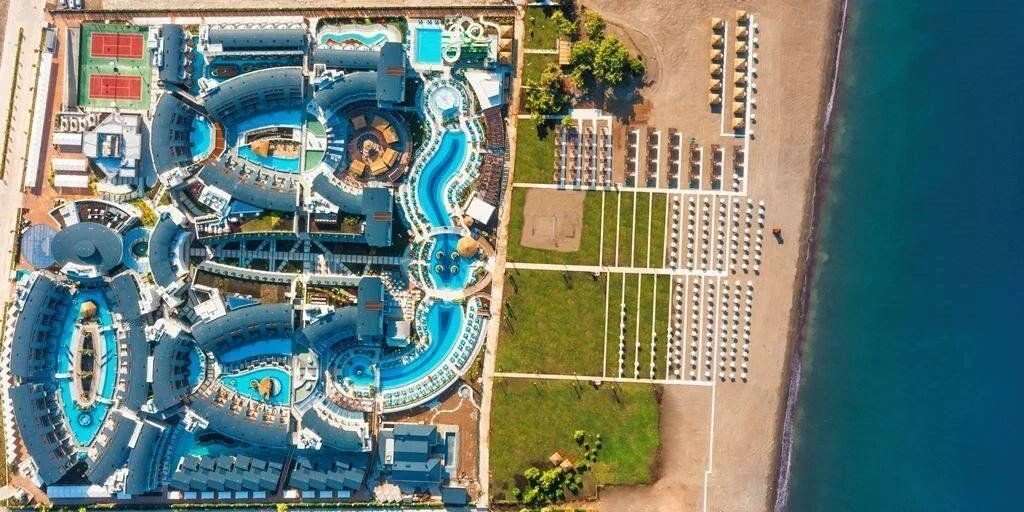 Az ötcsillagos szállodakomplexum elegáns, tágas és ízlésesen berendezett előcsarnokkal várja vendégeit, ahol 24 órás recepció és több lift biztosítja a kényelmet. A kulináris élményeket a főétterem büféételei, egy kiváló kávézó cukrászdával, valamint nyolc bár – köztük a medencebár és a strandbár – teszik teljessé. Felár ellenében, előzetes foglalással à la carte étterem is rendelkezésre áll. A komplexumban konferenciaközpont, mini market és ingyenes Wi-Fi is található. A pihenést és szórakozást a belső medence, a fő kültéri medence, a gyermekmedence, valamint az öt csúszdával felszerelt vízi park szolgálja. A napozóágyak, napernyők és strandtörölközők a medencék mellett ingyenesen biztosítottak. Térítés ellenében mosoda, szobaszerviz, autókölcsönzés, orvosi ellátás, fodrász, fotós és személyi edző szolgáltatás is igénybe vehető. Elfogadott hitelkártyák: Visa és MasterCard.