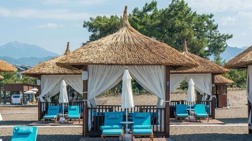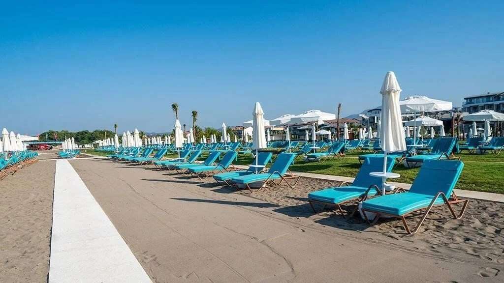 A szállodai strand közvetlenül az üdülőhely mellett helyezkedik el, homokos-kavicsos partszakasszal, amely kényelmes pihenést és fürdőzést kínál. A vendégek számára a napozóágyak, napernyők és strandtörölközők ingyenesen biztosítottak, a strandbár pedig az Ultra all inclusive szolgáltatás részeként vehető igénybe. A tengerparton kényelmes pavilonok is rendelkezésre állnak, melyek felár ellenében bérelhetők.