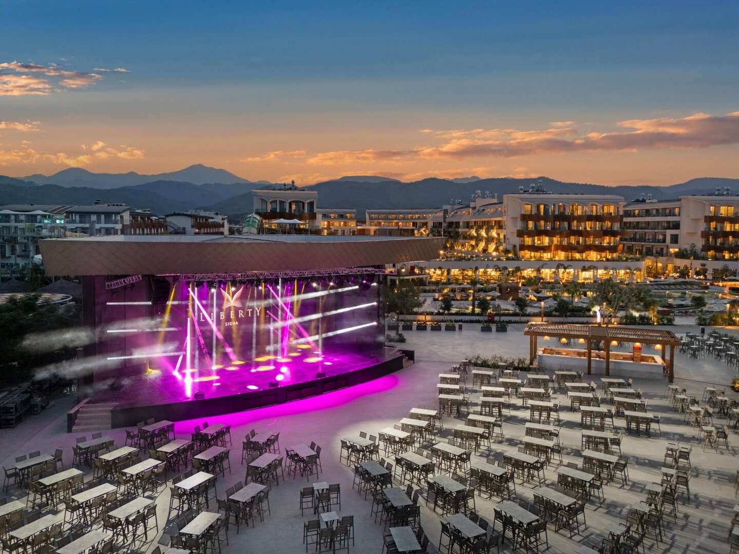 A szálloda összesen 561 szobával rendelkezik, amelyek négyemeletes épületekben találhatók, és rendelkezik előcsarnokkal, recepcióval, légkondicionálóval, lifttel, főétteremmel, 6 à la carte étteremmel, bárokkal, snackbárokkal, 10 kültéri medencével (ingyenes napernyők és nyugágyak), gyermekmedencével, fedett medencével, medencebárral, napozóterasszal, ingyenes Wi-Fi-vel.