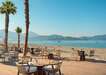 A homokos-kavicsos strand közvetlenül a szálloda előtt található (napernyők és nyugágyak ingyenesek).