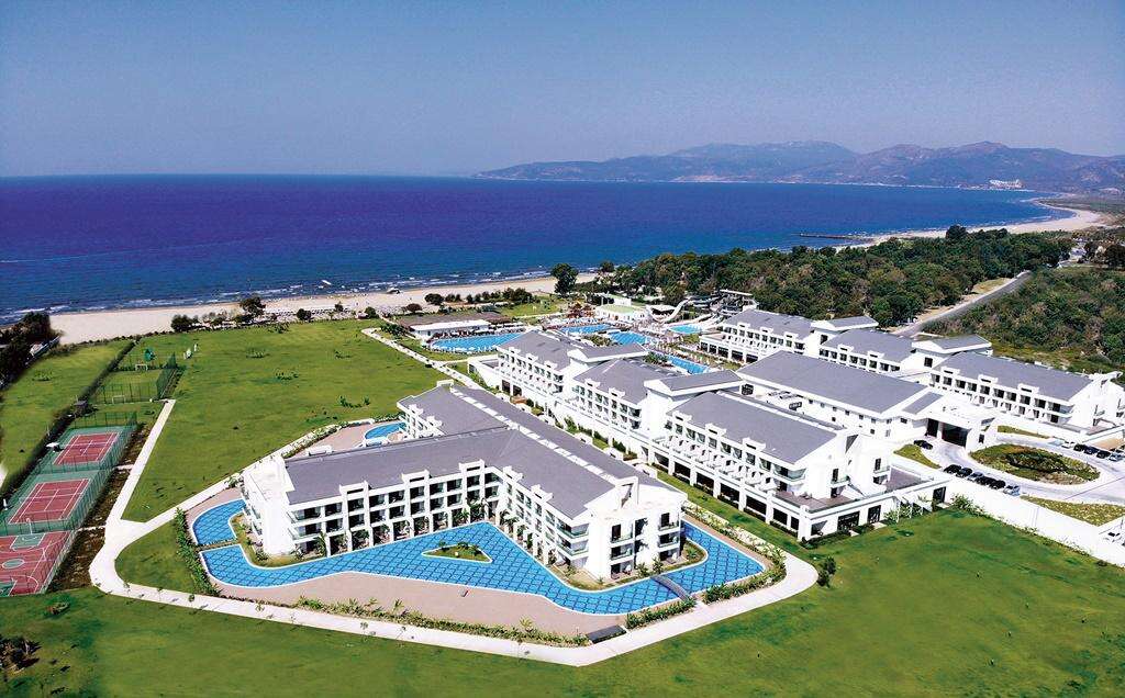 Szállás leírás: Az 5*-os, összesen 388 szobával rendelkező szálloda kb. 8 km-re Ephesus antik óvárosától, kb. 12 km-re Kusadasi központjától, közvetlenül a homokos tengerparton helyezkedik el.