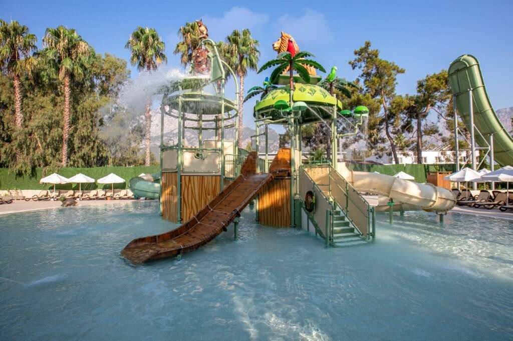 • Medence napozóágyakkal és napernyőkkel, gyermekmedence, aquapark 5 felnőtt és 4 gyermek csúszdával, beltéri medence, miniklub (4-12 éveseknek), játszótér, minidisco, török fürdő, szauna, fitnesz terem, step-aerobic, vízi torna, aqua-spinning, kosárlabda, teniszpálya használat és felszerelés, asztalitenisz, boccia, darts, WiFi elérhetőség. A strandon snack étterem várja az utasokat. Napozóágyak, napernyők és strandtörölközők ingyenesen állnak a vendégek rendelkezésére.