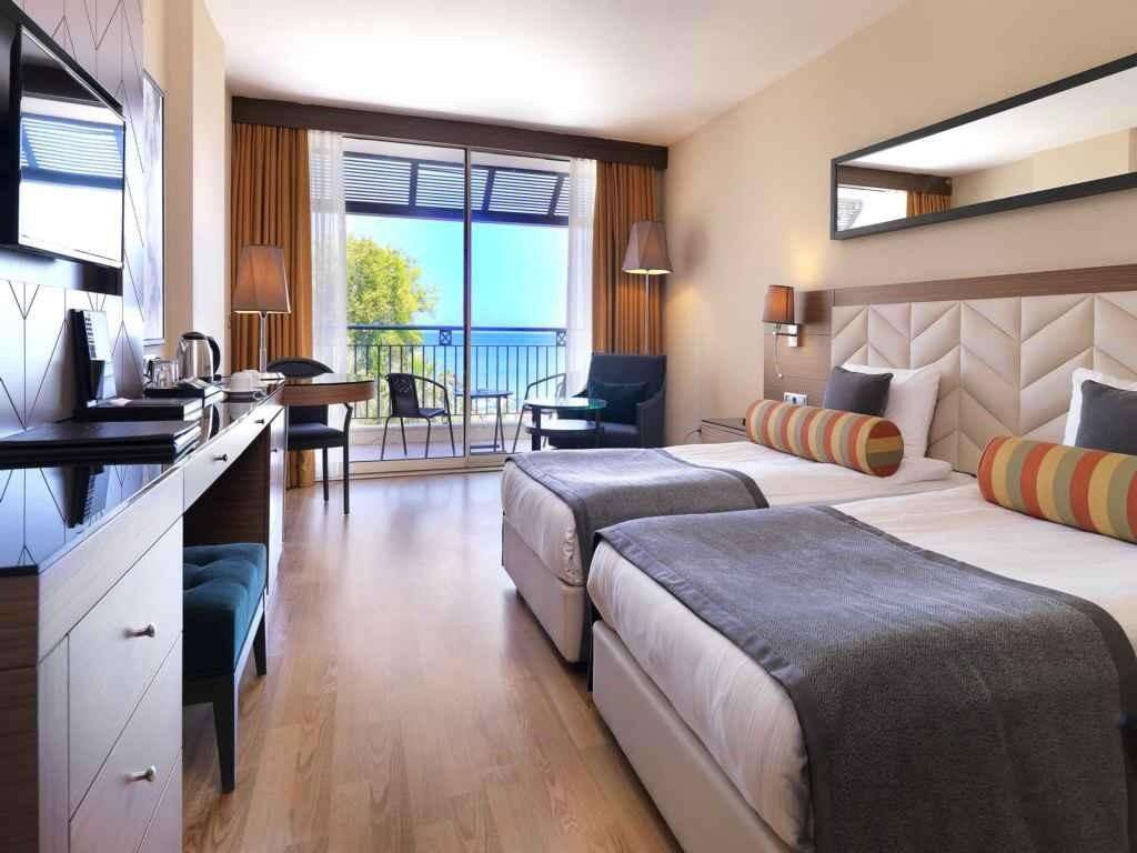 SZOBÁK: 162 szoba • erkély vagy terasz • központi légkondicionálás • hajszárító • telefon • TV • széf • minibár • papucs • wifi Standard szobák: 23 m², max. 2 fő részére Superior szobák: 30 m², max. 3 fő részére, kilátással a környékre vagy a tengerre Superior large szobák: 35 m², max. 3 fő részére, kilátással a környékre Deluxe családi szobák: 55–60 m², max. 4 fő részére, 2 hálószoba Deluxe lakosztályok: 50 m², max. 3 fő részére, 1 hálószoba és 1 nappali