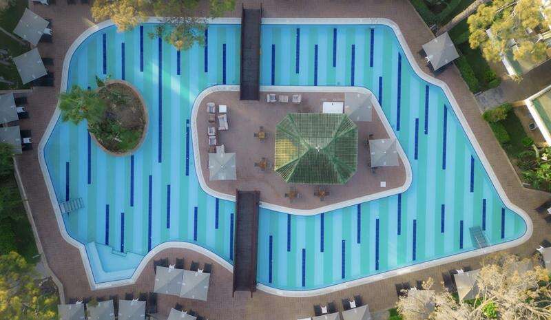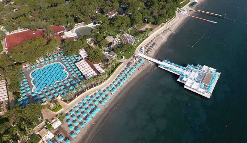 Az 560 szobával rendelkező szálloda kb. 36 km-re található Antalya repülőterétől, kb. 16 km-re Kemer központjától, közvetlenül a kavicsos tengerparton. A napernyők, napágyak, matracok és strandtörölközők a medencénél és a tengerparton térítésmentesen állnak rendelkezésre. A szórakozásról animációs és sport programok, esti show műsorok gondoskodnak. A szép környezetben fekvő, színvonalas szállodát családoknak és pároknak ajánljuk. A szállodában központi étterem, a’la carte éttermek, bárok, a kertben szabadtéri medencék, gyermekmedencék és aquapark várja a vendégeket.