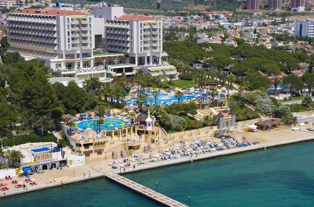 A stílusos, 5 csillagos szálloda kiváló helyen, közvetlenül a 150 m hosszú homokos tengerparton, Kusadasiban található. A vendégeket több étterem, 2 nagy medence, gyermekmedence, wellness-részleg, strandbár és szórakoztató programok is várják.