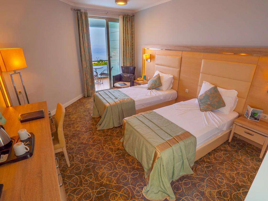 SZOBÁK: 177 szoba • erkély • központi légkondicionálás • hajszárító • TV • telefon felár ellenében • széf • minibár felár ellenében • fürdőköpeny és papucs felár ellenében • standard szobák: 27 m², max. 3 fő számára • large szobák: 36 m², max. 4 fő számára • superior szobák: 54 m², max. 4+1 fő, 2 összenyitható szobával