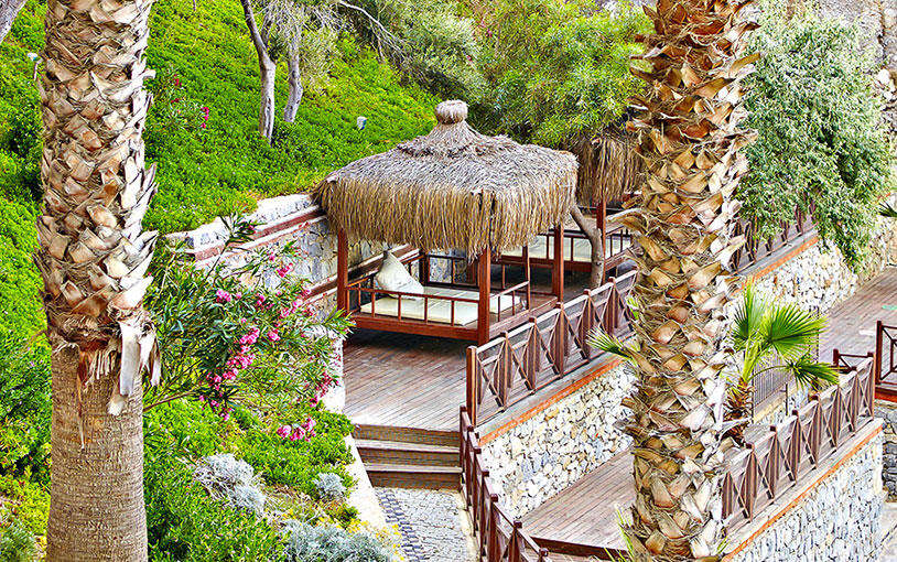 medence napernyőkkel és napágyakkal • csúszdák • főétterem • bárok (medence, strand) • könnyed animációs programok • darts • teniszpálya • kosárlabda • mini foci • asztalitenisz • térítés ellenében: SPA központ • törökfürdő • masszázs • szauna • mosoda • biliárd