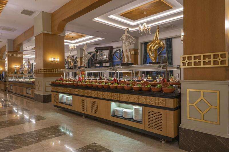 Ultra all inclusive ellátás, mely 00:00- 24:00-ig vehető igénybe és az alábbi szolgáltatásokat tartalmazza: reggeli, ebéd, vacsora a központi étteremben svédasztalos rendszerben, késői reggeli, délután snackek, délutáni tea, kávé és sütemény, fagylalt (meghatározott időszakban), gözleme, éjjeli snack. A bárokban és a főétkezéseknél a helyi alkoholos és alkoholmentes italok, valamint néhány import ital térítésmentesen fogyaszthatók. Bizonyos a’la carte éttermekben térítésmentesen lehet étkezni, azonban előzetes foglalás szükséges. Bizonyos import alkoholos és alkoholmentes italok, prémium kategóriájú italok, török kávé, a frissen facsart gyümölcslevek, valamint fogyasztás az a’la carte éttermekben és a vitamin bárban térítés ellenében állnak rendelkezésre.