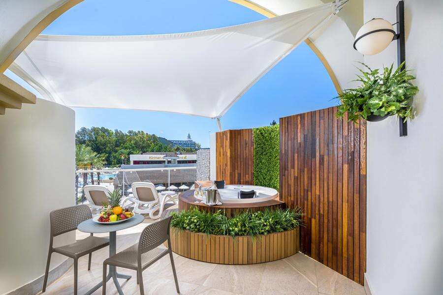 SZOBÁK: összesen 436 szoba • erkély • légkondicionálás • hajszárító • telefon • SAT TV • minibár (naponta feltöltve) • vízforraló • kávé- és teafőző készlet • széf • fürdőköpeny és papucs • wifi • Standard szobák: kb. 28 m², max. 2+1 fő, kilátás a tengerre vagy tájra • Családi szobák: kb. 38 m², max. 3+1 fő, 2 hálószoba, ajtóval elválasztva, kilátás a tengerre vagy tájra • Jacuzzis standard szobák: kb. 28 m², max. 2+1 fő, jacuzzi a teraszon • Jacuzzis családi szobák: kb. 38 m², max. 3+1 fő, 2 hálószoba, ajtóval elválasztva, jacuzzi a teraszon