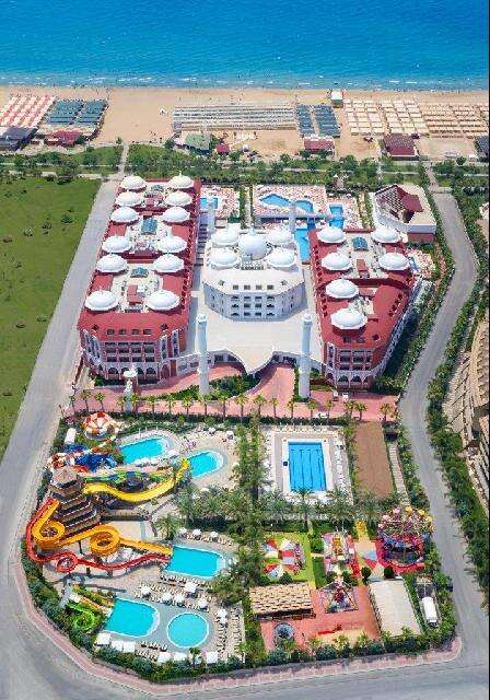 Élje át Ön is a keleti békességet és élvezze a kelet pompáját a Török Riviérán! A Royal Taj Mahal Hotel az indiai Agrában található, az UNESCO világörökség részeként, illetve a Világ 7 új csodájaként számontartott Taj Mahal mintájára épült, tematikus szálloda. A Stone Group hotellánc 2015 júniusában megnyílt tagja testvérszállodája, a Royal Dragon Hotel mellett terül el Evrenseki-ben, az antalyai repülőtértől 48 km-re, Side központjától 5 km-re, közvetlenül saját, lassan mélyülő, homokos tengerpartján. A közeli városokba helyi buszjárattal (dolmussal) vagy taxival könnyedén bejuthatunk. A csillogó szálloda egyedülálló élményeket ígér; nyúljon el a hűs medencék partján egy koktéllal a kezében, vagy élvezze a széleskörű programválasztékot, az ámulatba ejtő, esti show-műsorokat, illetve az izgalmas, adrenalinnövelő vízi sportokat a gyönyörű, homokos tengerparton. Itt gyermekei is garantáltan jól szórakoznak majd; a hotel a kicsiket képzett animátorokkal, aquaparkkal és vidámparkkal várja.