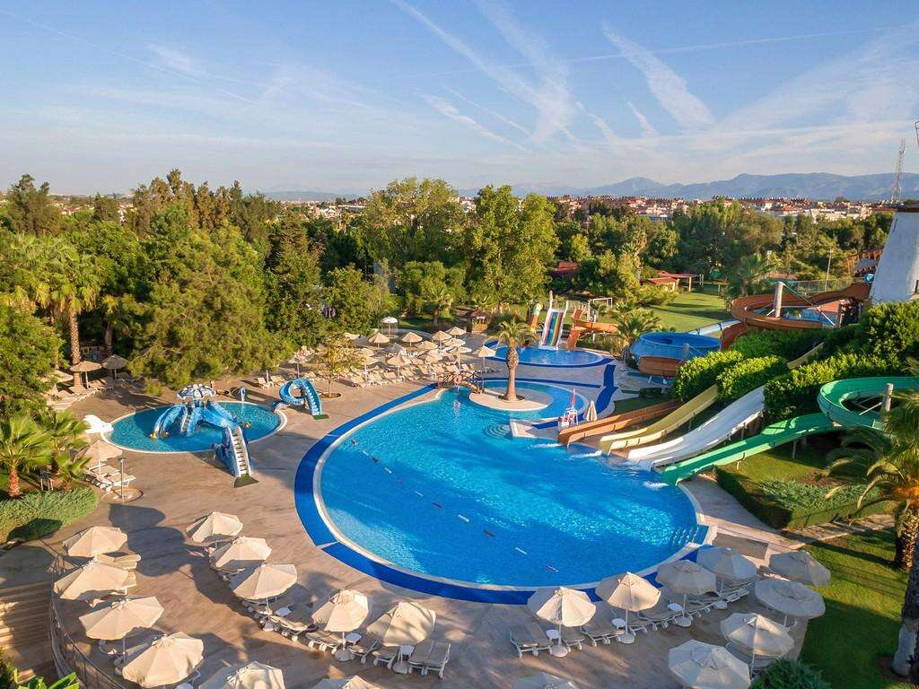 ELHELYEZKEDÉS: Side központja 10 km • Antalya központja 80 km • Antalya repülőtér 75 km • 310 000 m²-es területen fekszik • a közeli városok helyi busszal vagy taxival érhetők el • a hotel akadálymentesített bejárattal rendelkezik