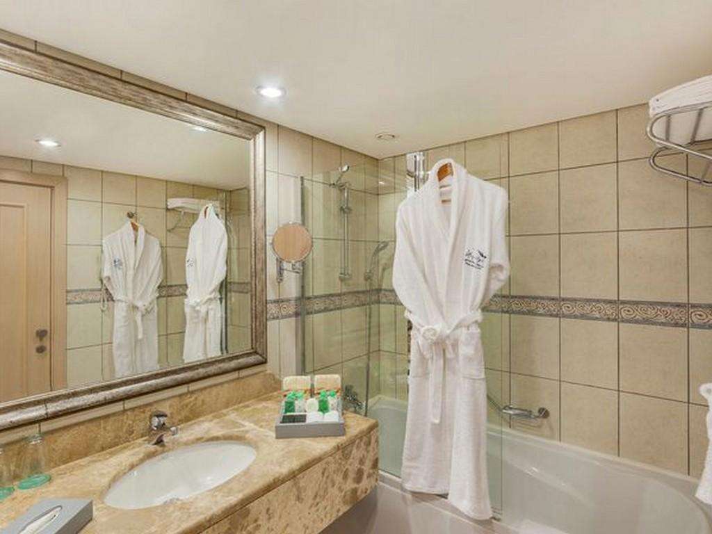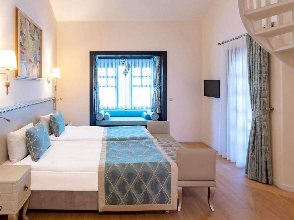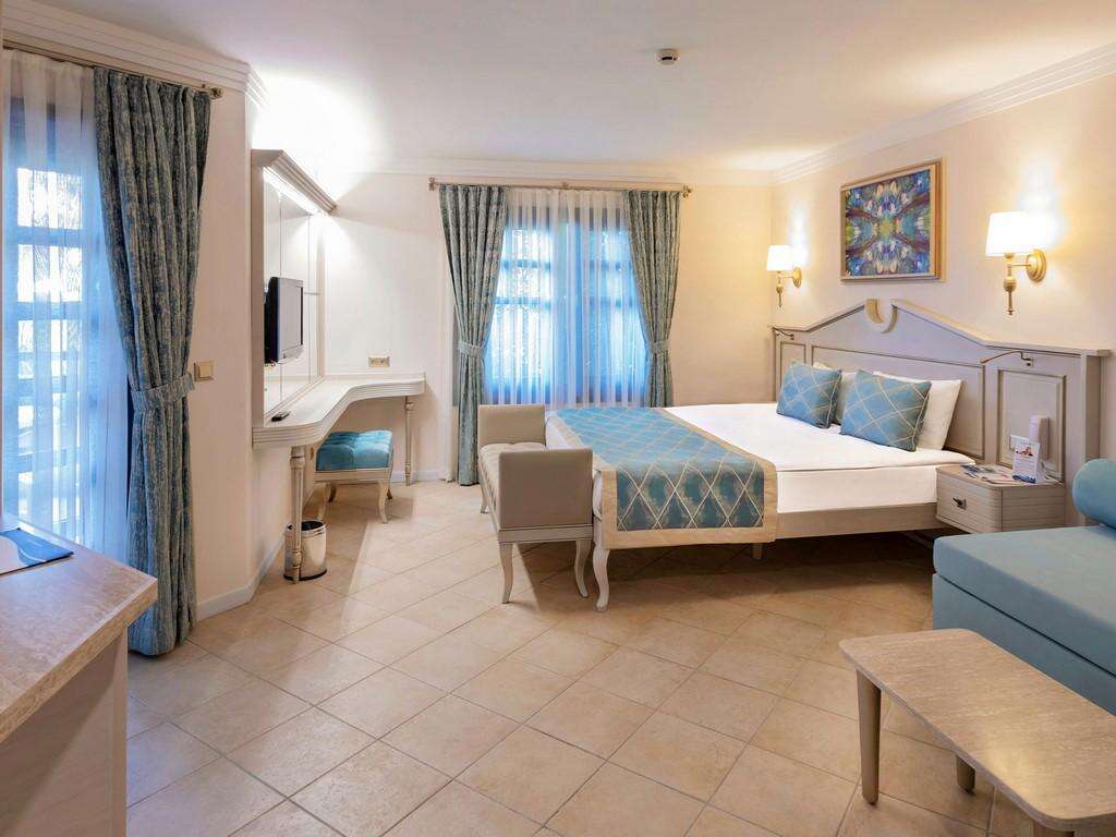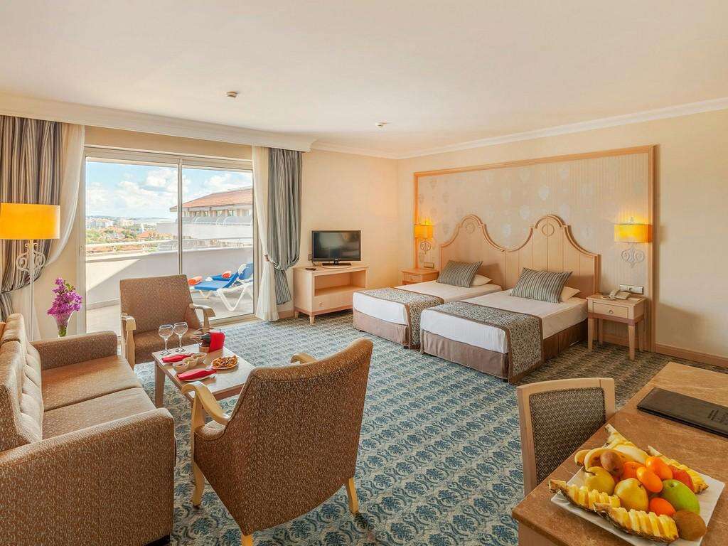 SZOBÁK: 822 szoba • erkély • központi légkondicionálás • hajszárító • TV • telefon • széf • minibár (naponta feltöltve) • kávé- és teafőző szett • papucs • wifi • deluxe szobák tájra néző kilátással: 41 m², max. 2+1 fő részére • deluxe szobák tengerre néző kilátással: 46 m², max. 3+1 vagy 2+2 fő részére • junior lakosztályok: 66 m², max. 2+1 fő részére • deluxe lakosztályok: 70 m², max. 2+2 fő részére, 1 hálószoba és 1 nappali • superior klubszobák: 22–28 m², max. 3 fő részére • duplex klubszobák jacuzzival: 70 m², max. 4 fő részére, 2 hálószoba, 2 fürdőszoba