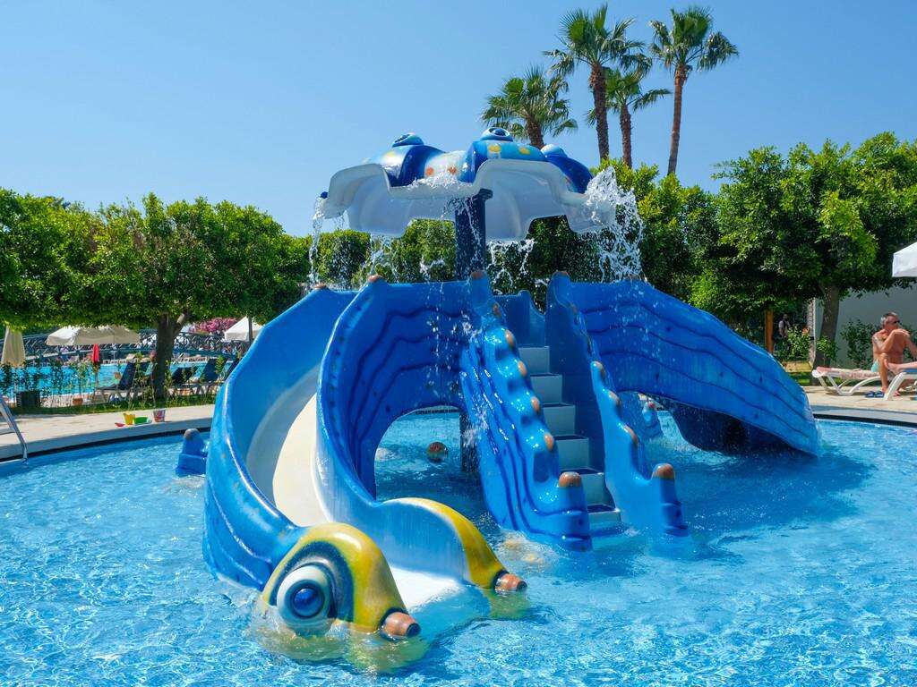 SZOLGÁLTATÁSOK: medence napernyőkkel és napágyakkal • csúszdák • beltéri medence • főétterem • bárok (lobby, medence, strand) • könnyed animációs programok • fitneszterem • aerobik • vízi torna • strandröplabda • boccia • darts • asztalitenisz • TV-sarok • törökfürdő • szauna • gőzfürdő • wifi térítés ellenében: SPA- és wellnessközpont • törökfürdő-kezelések • fodrászat • mosoda • orvosi szolgálat • üzletek • vízi sportok a strandon • konferenciaterem