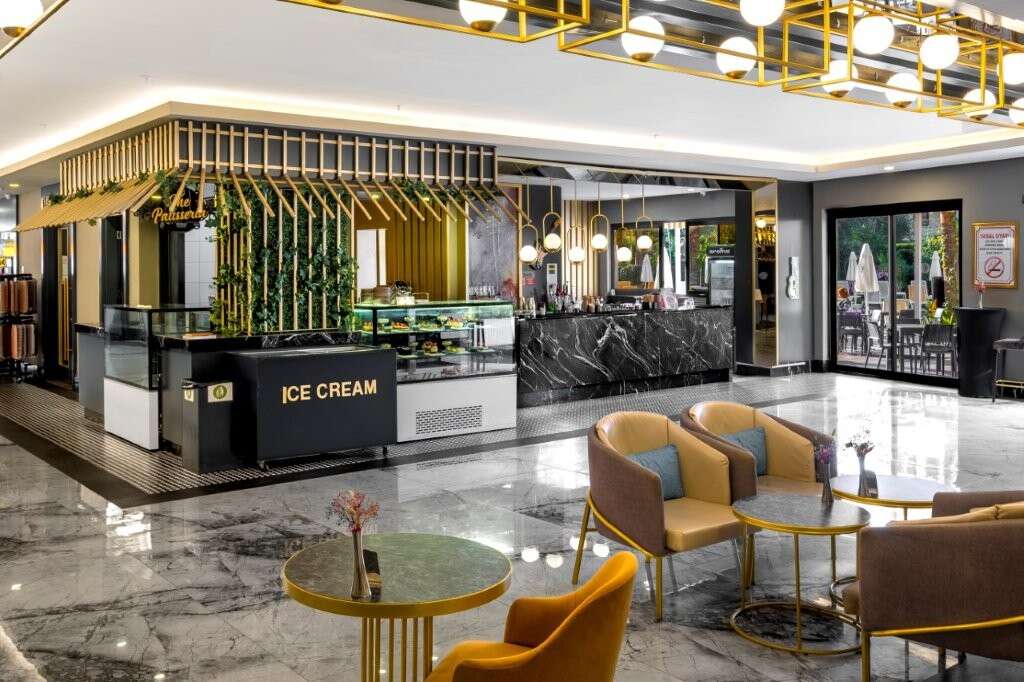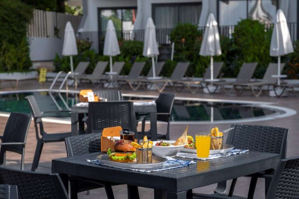 A’la carte Ultra All Inclusive: Reggeli, ebéd és vacsora a’ la carte és büférendszerben, késői reggeli, frissen facsart narancslé a reggelihez, éjszakai speciális menü (10:00-07:00), napközbeni snackek, gözleme, fagylalt és gofri meghatározott időpontokban, kávé/tea és sütemények, helyi és import italok 24 órában, minibár naponta üdítőkkel, vízzel és sörrel feltöltve, 2 a’la carte étterem (olasz és hal, a tartózkodás során 1 alkalommal, előzetes asztalfoglalással).