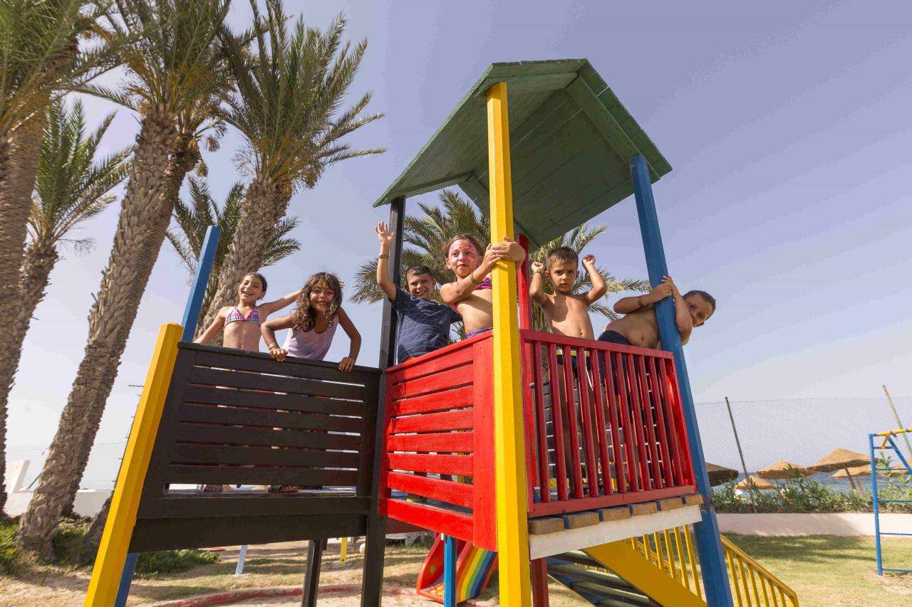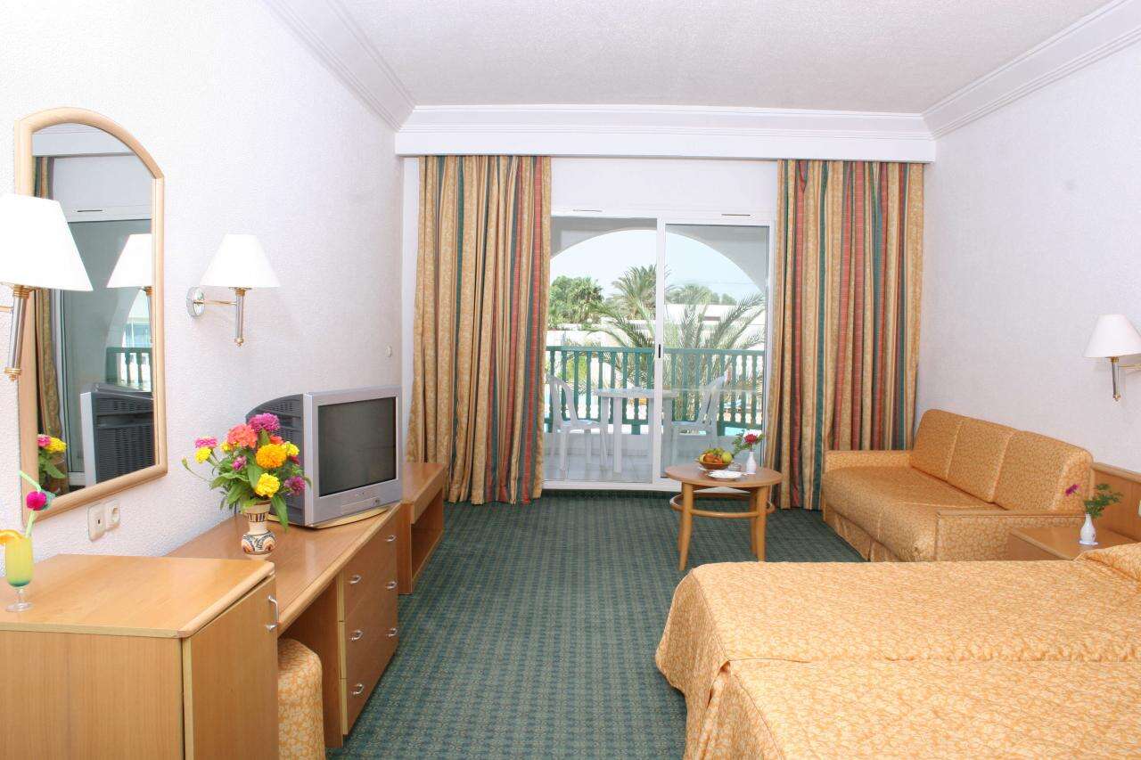 Az 505 szobával rendelkező szálloda szobáiban légkondicionáló, fürdőszoba, Tv (a távirányítóért kb. 20 TND letét fizetendő), telefon, erkély vagy terasz található. Széf a szobában vagy a recepciónál bérelhető 30 TND letét + 5 TND/nap bérleti díjért. A szobák medencére, kertre, vagy térítés ellenében tengerre nézők. A légkondicionáló csak fő szezonban működik a szobákban. A családi szobák egy légterűek. A pótágy kihúzható kanapéágy.