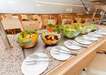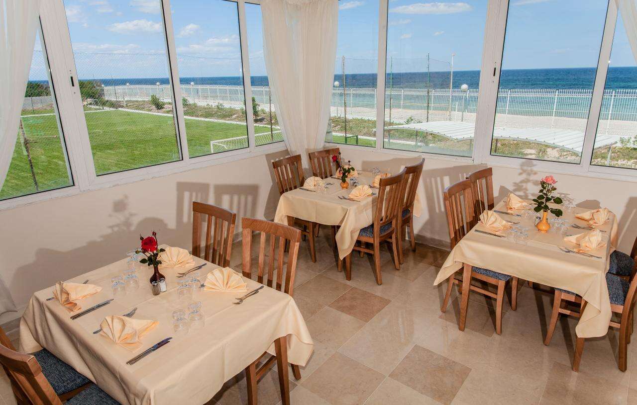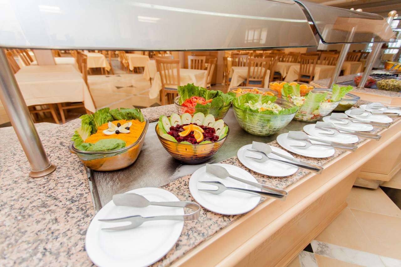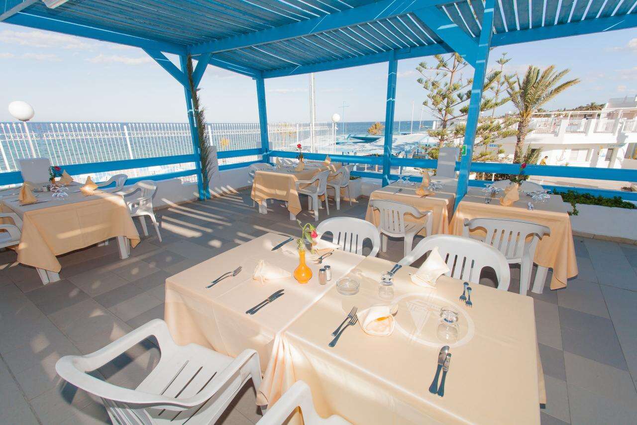 All inclusive ellátással foglalható, mely tartalmazza a büféjellegű reggelit, késői reggelit, ebédet, vacsorát, éjszakai snacet és a délutáni kávét, teát, süteményeket. Napközben a helyi alkoholos és alkoholmentes italok (ásványvíz, koktél, likőr, bor stb.) fogyasztása a kijelölt bárokban. Minden ital műanyag pohárban kerül felszolgálásra. A főépületben található a recepció, az étterem, valamint a bárok: snack-, lobbi-, medence melletti bár, valamint a pizzéria, és a mór kávézó (vízipipa térítés ellenében). A tengerparti bárban csak alkoholmentes italokat szolgálnak fel. Heti egy alkalommal előzetes bejelentkezéssel tunéziai vacsora fogyasztható az a’la carte étteremben. A palackozott vízért kb. 2 TND fizetendő.
