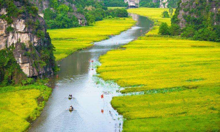 Reggeli után transzfer Ninh Binh-be, Vietnám festői szárazföldi öblébe. Látogatás Hoa Lu városába, amely a 11. században Vietnam ősi fővárosa volt. Itt megtekintjük Dinh és Le király templomát, és megcsodáljuk az ősi idők különleges építészeti stílusát, amely hűen őrzi a múlt emlékeit. Ezt követően hagyományos sampan csónakba szállunk, hogy felfedezzük Tam Coc lenyűgöző vidékét – neve szó szerint „három barlangot” jelent. A tájat gyakran nevezik „szárazföldi Halong-öbölnek”, köszönhetően a monumentális mészkőszikláknak, a titokzatos barlangoknak, a békés vízi utaknak, valamint a rizsföldek és mezők látványának, amely páratlan nyugalmat áraszt. Éjszaka Ninh Binh-ben (1 éj).