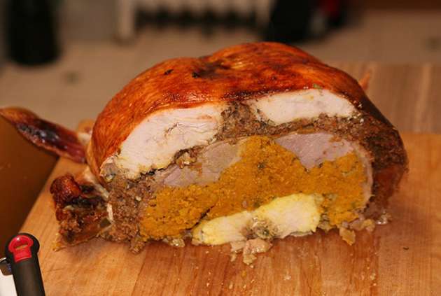 Egy nap, 1985-ben a Herbert’s Specialty Meat egyik munkásának támadt egy furcsa ötlete: Mi lenne, ha egy kacsát megtöltenénk egy csirkével, majd a két madarat betennénk egy pulykába? Az elsőre talán kicsit bizarr ötletből született meg az úgynevezett Turducken, melynek neve a madarak angol nyelvű rövidítéseiből áll. A fogás eredete egészen a 18. századba vezethető vissza. Az ünnepekkor a Yorkshire karácsonyi puding (az Egyesült Királyság tradicionális karácsonyi étele) és valamilyen szárnyas is biztosan az asztalra kerül.